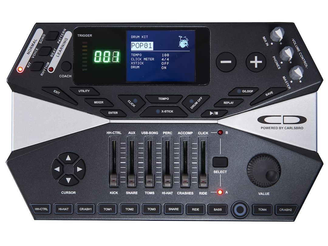 Drum settings & recording data can be transmitted to/from memory stick via USB so lessons can be recorded and used to practice against. From practice playing to stage performances, beginner to Professional this kits has everything you will need. The 14″ ride cymbal has three zone including bell, plus choke. 2″ Crash three zones plus choke and a large 10″ dual zone snare 1 drum with rim-shot functions. The only kit you will ever need at an unbelievable price Carlsbro headphones and EDA30 – 30 Watt, EDA50 – 50 Watt, and EDA200 – 200 Watt drum amplifiers are available for this kit and all the Carlsbro CSD range.