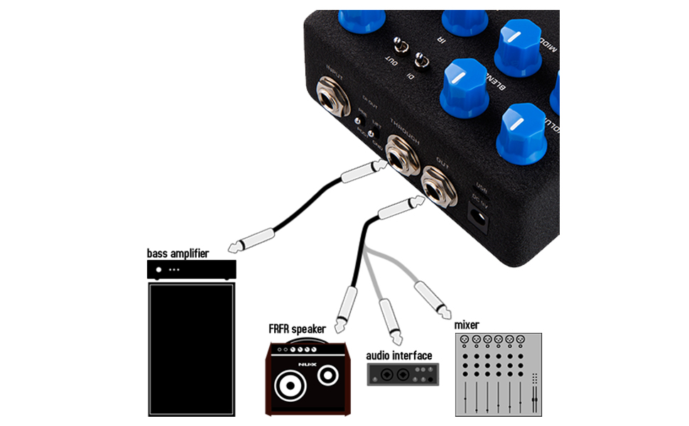 There are 16 IR slots (8 factory / 8 user) in the Melvin Lee Davis Bass Preamp + DI(Firmware V3), and the pedal comes with the selection of speaker cabinet IR files created by NUX. Also there is an independent volume control for the cabinet simulation to adjust the IR level.