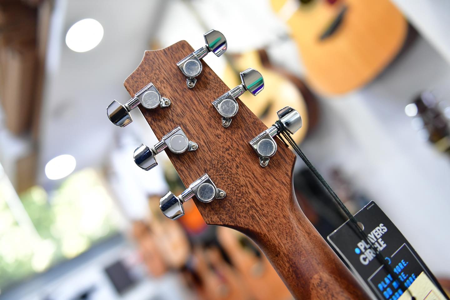 Other great features include a pin-less ovangkol bridge for easy string changes, synthetic bone nut and bridge saddle, ovangkol headcap, pearloid dot inlays, chrome die-cast tuners and an elegant Natural satin finish.