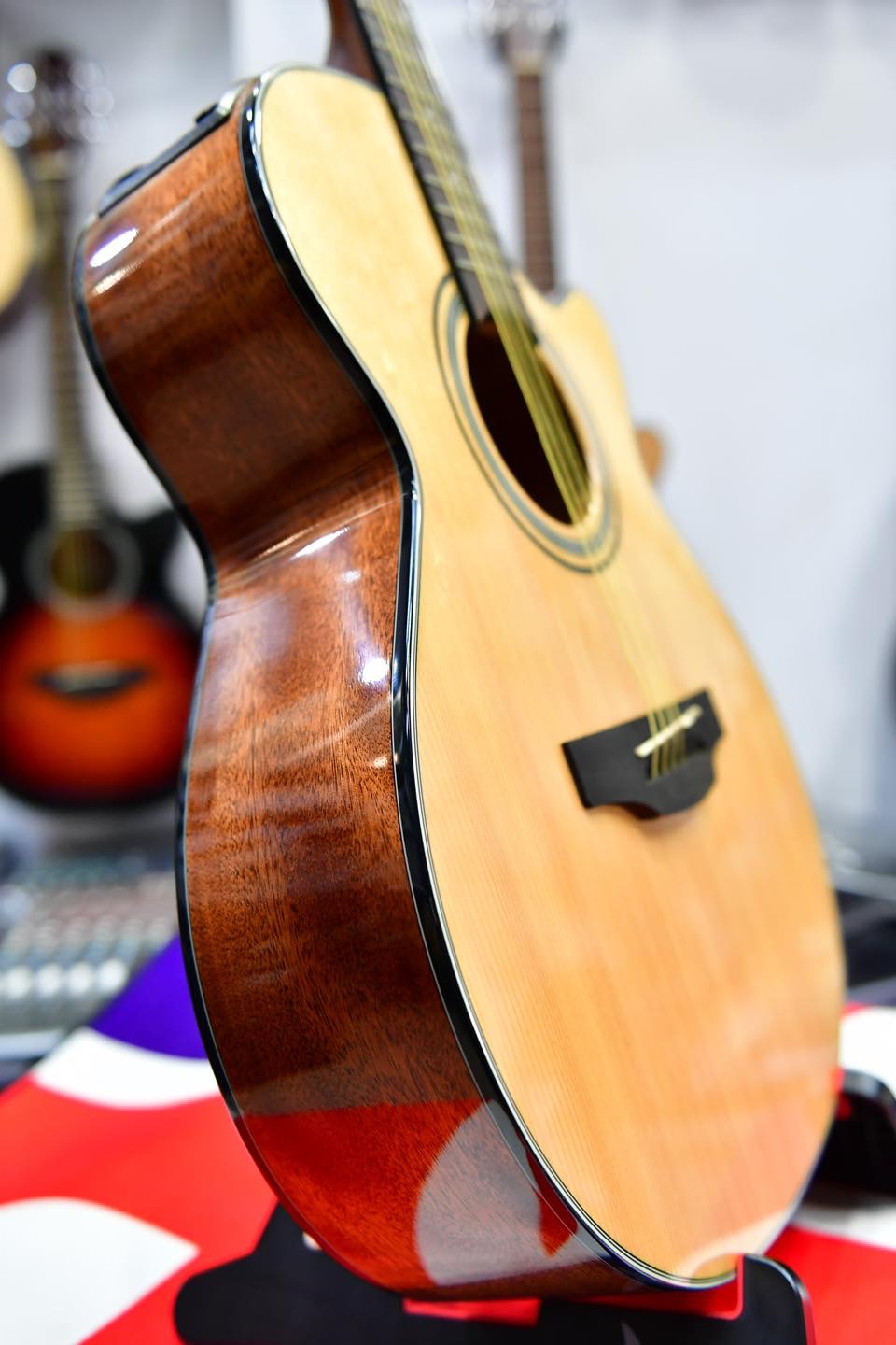 The FXC is very close to the traditional Grand Concert proportions. Excellent feedback control with a true and warm acoustic tone.