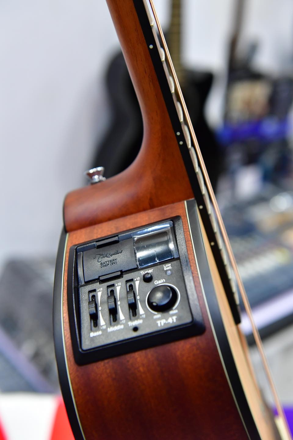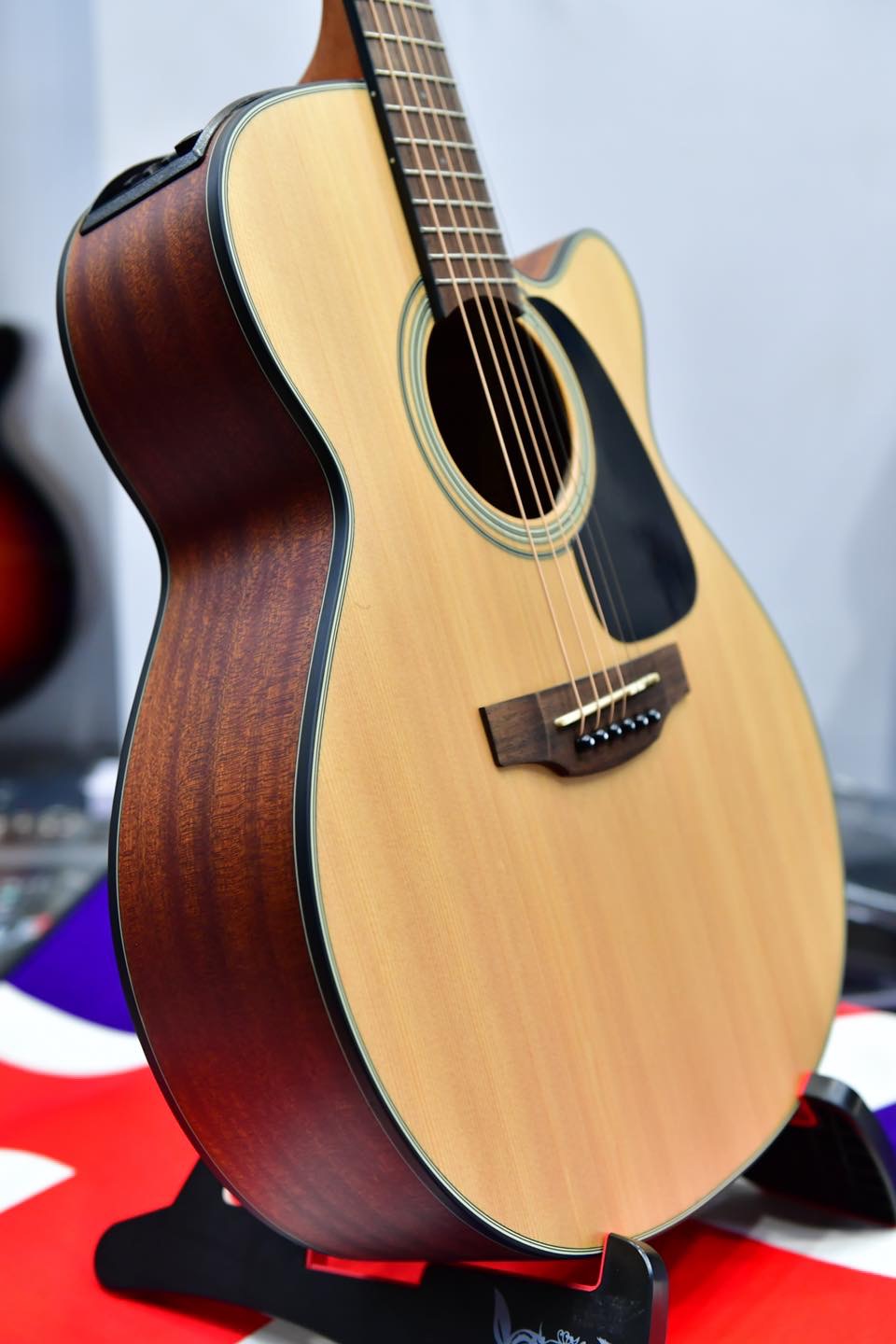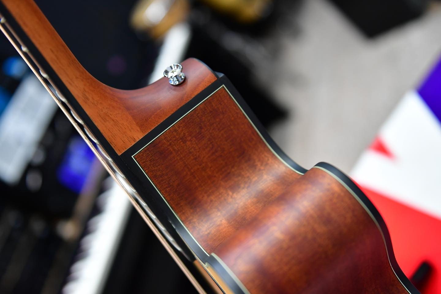 This original Takamine body is a scaled-down Jumbo at heart. The NEX has a silky balance to the tone that supports vocals beautifully.