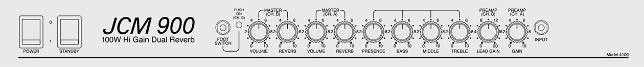 Channel B (volume, reverb), channel A (volume, reverb), presence, bass, middle, treble, channel B lead gain, Channel A gain