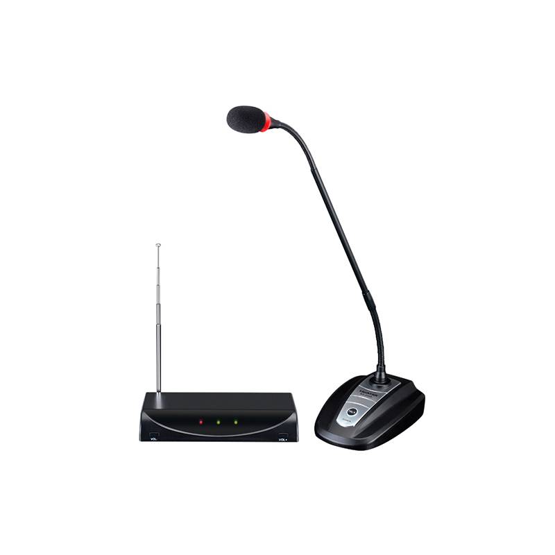 - Transmitter is designed with XLR socket which can be used as an independent wired conference microphone and can be powered by external 48V phantom power